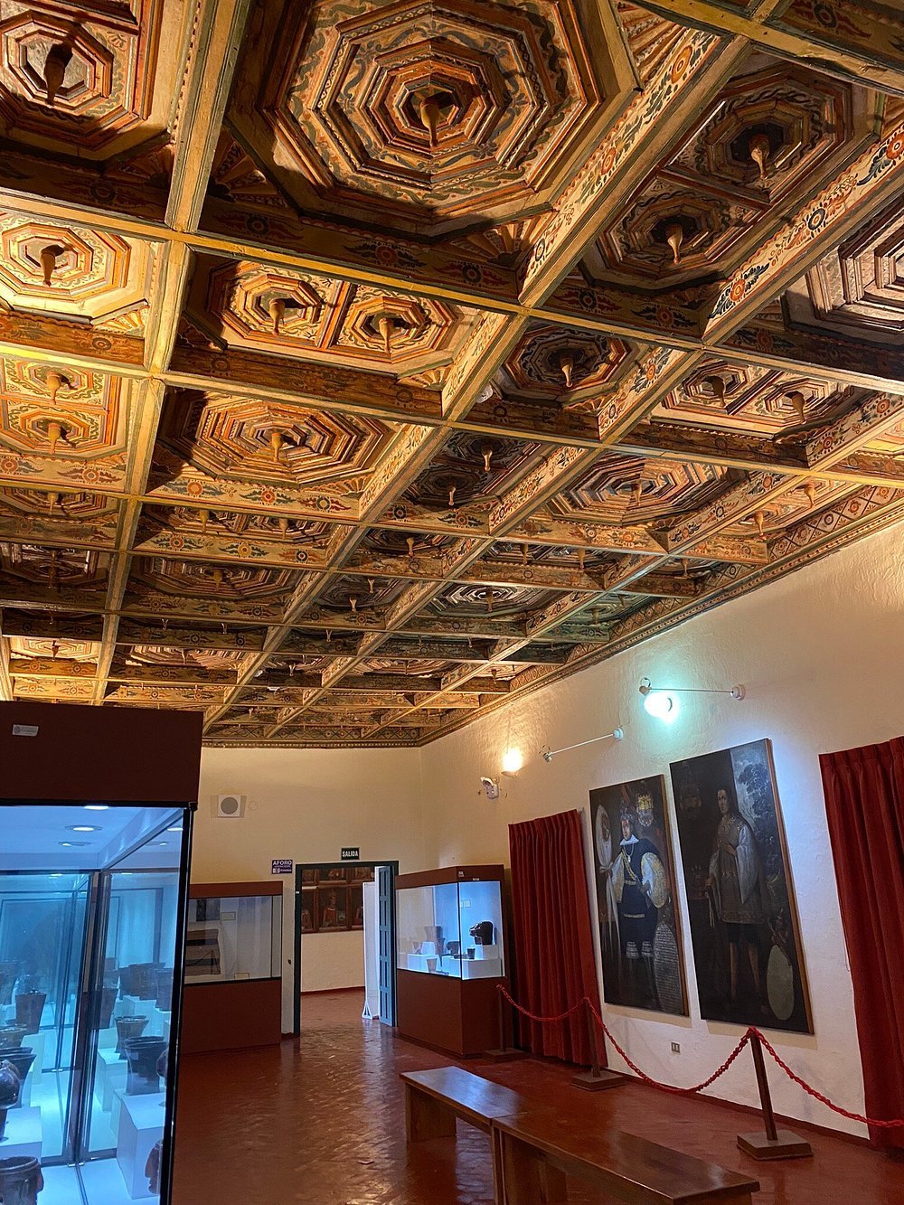 The intricately carved wooden ceiling is a masterpiece of colonial craftsmanship. It reflects the fusion of European artistic techniques with Andean spatial logic — a visual metaphor for cultural collision and transformation.