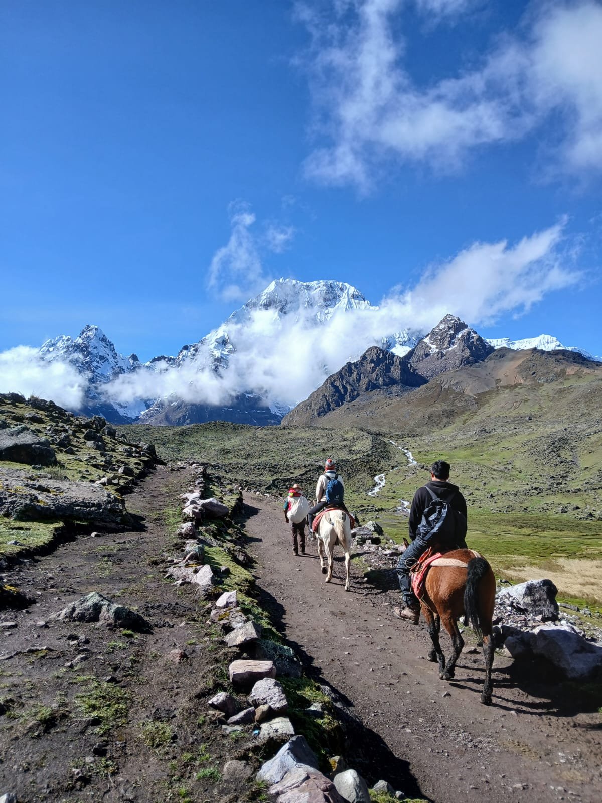 After exploring and taking plenty of photos, we’ll return on horseback to Pacchanta, where you’ll have time to relax in the natural hot springs surrounded by snowy peaks. These thermal waters are believed to have healing and rejuvenating properties, making them the perfect way to end your adventure.